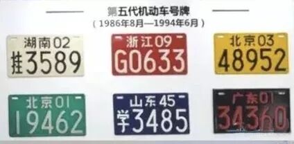▲第五代车牌,发行时间从1986年到1994年,采用序列式牌照。主要受日本车牌影响,分为上下两部分,省份+身份序号+序列式数字组成,而且当时就开始了按颜色来区分车型用途。