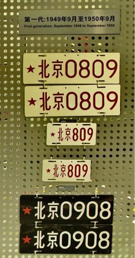 建国初期北京的车牌样式,可以看出,当时的车牌设计非常简洁,有黑底白底加上白字和红字,并无其他元素和英文字母点缀,整体看起来非常干净。